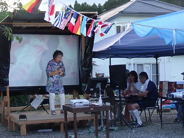 当日の午前中は晴天、猛暑となっていましたが、開始直前の午後4時ごろから雨となってしまいました。 一時は激しい雷雨となりましたが、ジュース、ビールに焼きそば、から揚げ、枝豆などを食べながら、カラオケ、ビンゴゲーム、ラッ キー賞の抽選などのイベントを楽しみました。